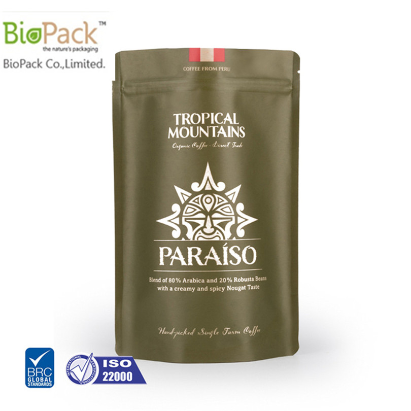القهوة القابلة للتحلل الحيوي وجوز الكاجو الرمز البريدي قفل الوقوف كيس ورق تغليف أغذية كرافت من الصين