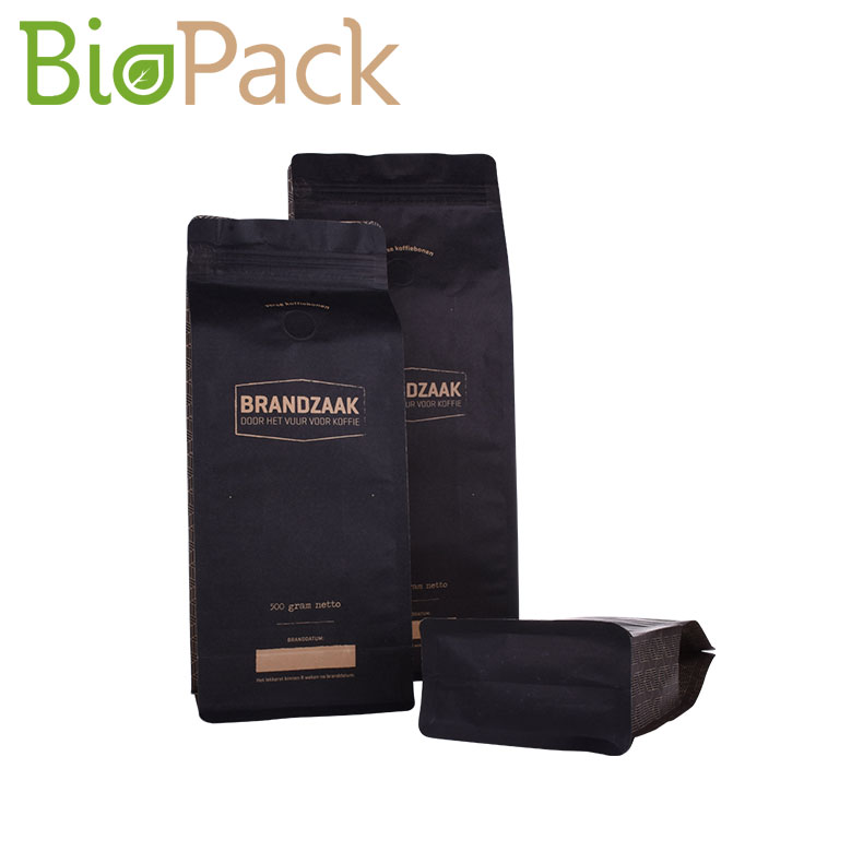 كرافت ورقة مسطحة القاع PLA كيس القهوة التعبئة والتغليف القابلة للتحلل مع صمام